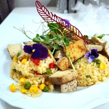 - Zeleninové rizoto, grilovaným tofu, šalát (vegánske, bezlepkové)