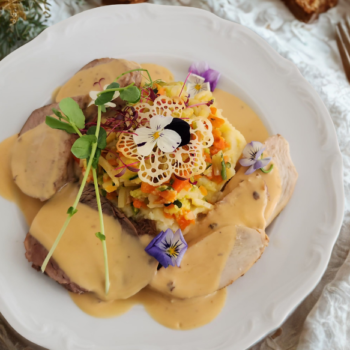 - Bravčová panenka pečená so slaninkou, baby mrkvou a rozmarínom