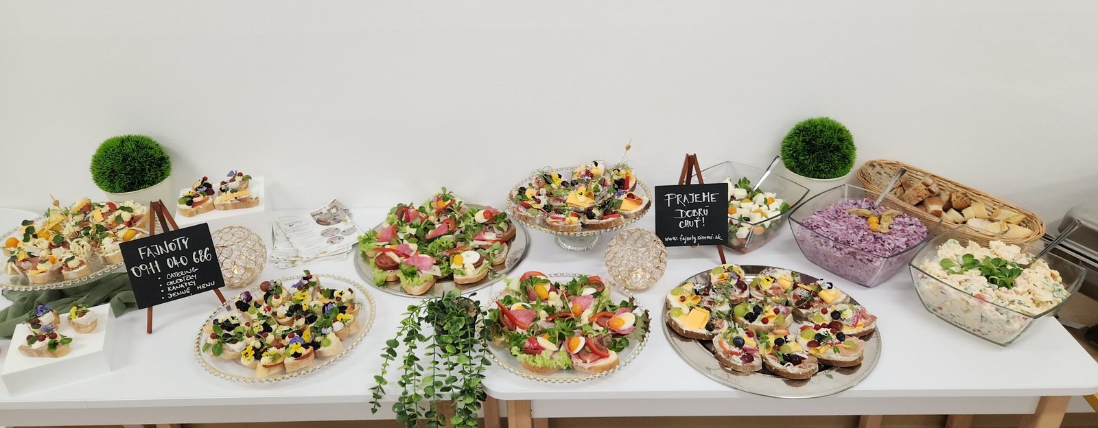 Ideálne na oslavy, svadby, firemné podujatia alebo posedenia s priateľmi, pripravené tak, aby potešili oko aj chuťové poháriky. Čerstvo pripravené jedlá s dôrazom na chuť a eleganciu.